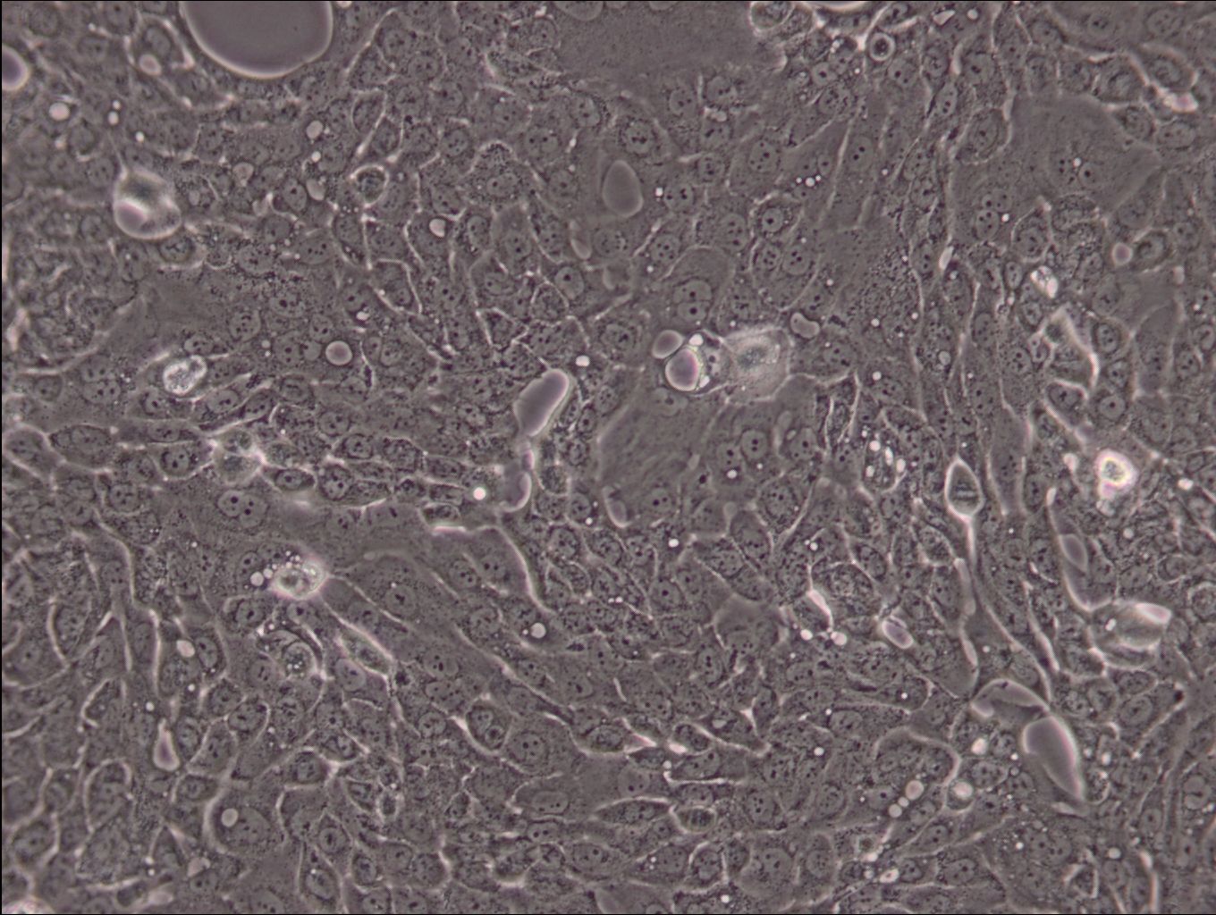 产品简介:CFPAC-1是胰腺管腺癌细胞系,建自26岁白人男性囊性纤维变性(CF)的肝转移灶。 该细胞系表达囊性纤维变性跨膜调节因子(CFTR)。 形态为上皮样且顶端微绒毛极化。该细胞表达胰腺管细胞特征性的细胞角蛋白和癌胚抗原。倍增时间为30-32小时。 它是亚3倍体的细胞系,36%的细胞的染色体模式数为75。 该细胞传代至24代时在无胸腺小鼠中致瘤种属 人